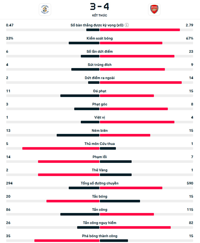 Thời điểm cuối trận, hai đội đã có những tình huống ăn miếng trả miếng đầy hấp dẫn. Nhưng chỉ có Arsenal với bản lĩnh của một đội bóng lớn là có được bàn thắng. Phút bù giờ thứ 7 của hiệp 2, Declan Rice bật cao đánh đầu sau đường chuyền của Odegaard ấn định tỷ số 4-3.
