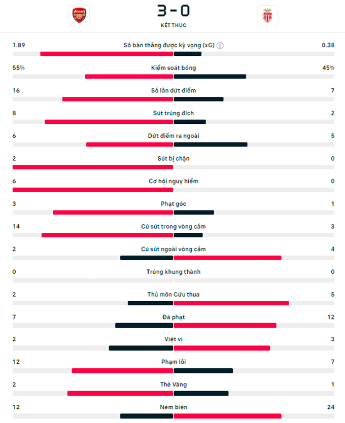 HÀNG CÔNG BÙNG NỔ, ARSENAL THẮNG ĐẬM MONACO ĐỂ VÀO TOP 3