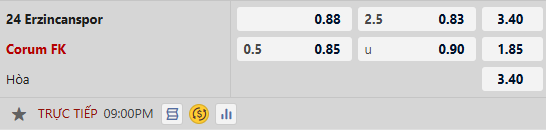Thông tin tỷ lệ 24 Erzincanspor vs Corum: