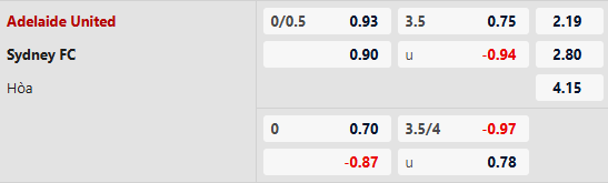 Thông tin tỷ lệ Adelaide United vs Sydney FC: