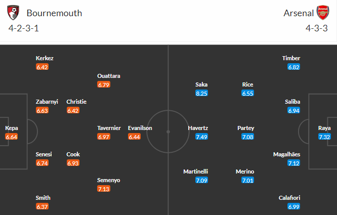 Đội hình dự kiến AFC Bournemouth vs Arsenal: