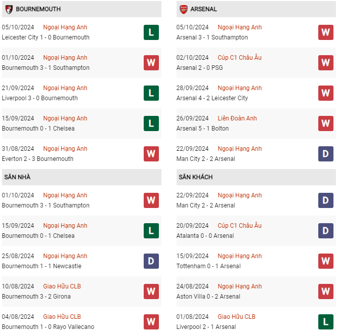 - AFC Bournemouth thua 8/10 trận gặp Arsenal gần đây.