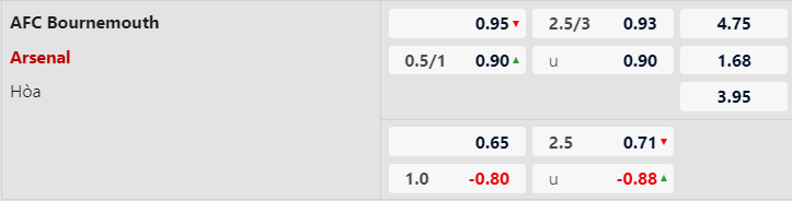 Thông tin tỷ lệ kèo bóng đá AFC Bournemouth vs Arsenal: