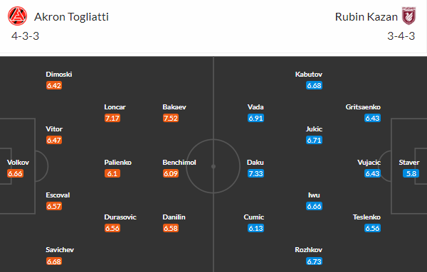 Đội hình dự kiến Akron Togliatti vs Rubin Kazan:
