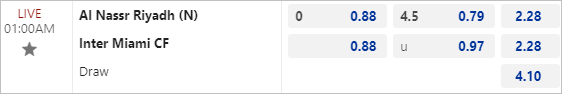 Với những gì đang diễn ra cũng như xét theo tình cảnh của 2 đội, mức kèo hòa được thua là không thế hiện được sự ủng hộ với Al Nassr.