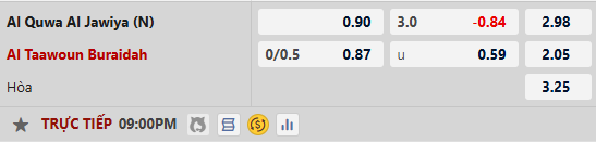 Thông tin tỷ lệ Al Quwa Al Jawiya vs Al Taawoun: