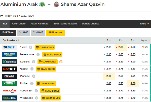 Aluminium Arak không thắng cả 5 trận vừa qua thuộc giải VĐQG Iran và chỉ thu về 4 điểm: hòa 4, thua 1. Trong cùng khoảng thời gian thì Shams Azar giành được 6 điểm: thắng 2, thua 3.