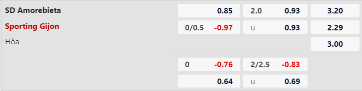 Thông tin tỷ lệ Amorebieta vs Sporting Gijon: