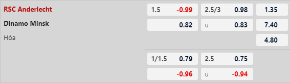 Thông tin tỷ lệ kèo Anderlecht vs Dinamo Minsk: