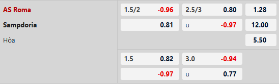 Thông tin tỷ lệ kèo AS Roma vs Sampdoria: