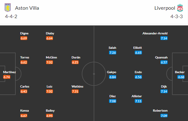 Đội hình dự kiến Aston Villa vs Liverpool: