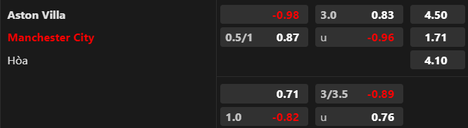 Thông tin tỷ lệ kèo bóng đá Aston Villa vs Man City: