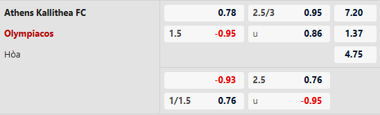 Thông tin tỷ lệ Athens Kallithea vs Olympiacos:
