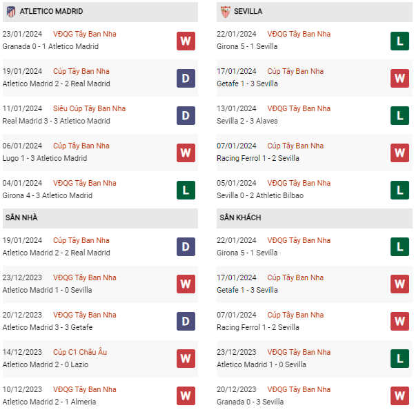 Tất nhiên, không ai có thể coi thường khả năng đấu cúp của Sevilla nhưng rõ ràng Atletico Madrid cũng rất cứng. Điều an ủi với Sevilla là cả hai chiến thắng của họ ở cúp nhà Vua Tây Ban Nha mùa này đều diễn ra trên sân khách.