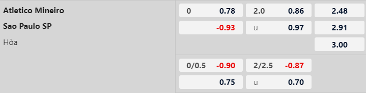 Thông tin tỷ lệ Atletico Mineiro vs Sao Paulo: