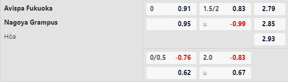 Thông tin tỷ lệ Avispa Fukuoka vs Nagoya Grampus: