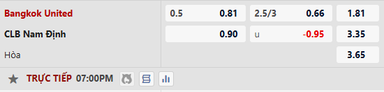 Thông tin tỷ lệ Bangkok United vs Nam Định: