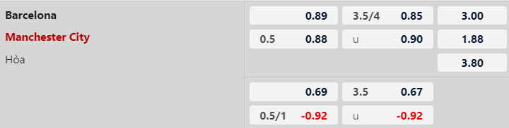Thông tin tỷ lệ kèo bóng đá Barcelona vs Man City: