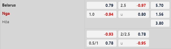 Thông tin tỷ lệ kèo Belarus vs Nga: