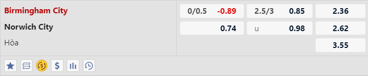 Thông tin tỷ lệ Birmingham vs Norwich City:
