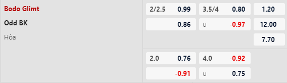 Chuỗi 5 trận sân khách không thắng - bao gồm 3 trận thua và 2 trận hòa không mang lại nhiều hy vọng cho Odd trong trận đấu này. Cần nhấn mạnh rằng Bodo Glimt đang sở hữu thành tích thắng 3/4 trận gần đây theo cả chuyên môn và kèo châu Á. Chưa kể, ở lần gần nhất chạm trán nhau mà có mức kèo 2 1/4 trái như trận này, các cầu thủ Bodo Glimt trên sân nhà đã nghiền nát Odds BK với tỷ số 7-0.