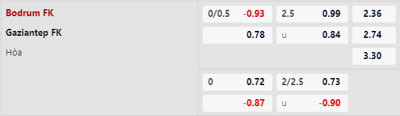 Thông tin tỷ lệ Bodrumspor vs Gaziantep: