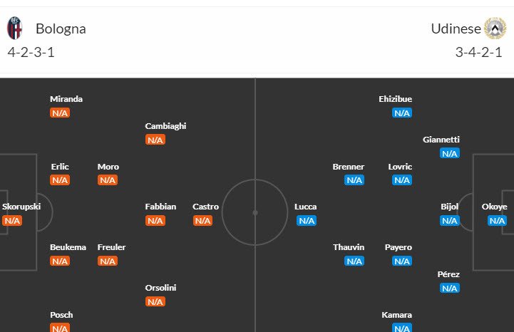 Bologna: El Azzouzi (Chấn thương đầu gối), Ferguson (Chấn thương đầu gối), Holm (Chấn thương đầu gối), Lucumi (Chấn thương đùi), Urbanski (Chấn thương đầu gối)