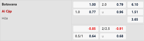 Thông tin tỷ lệ kèo Botswana vs Ai Cập: