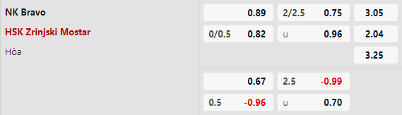 Thông tin tỷ lệ kèo Bravo vs Zrinjski: