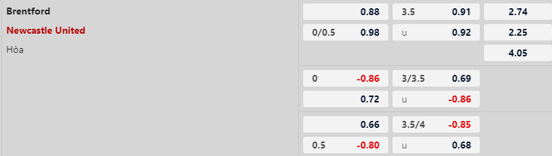 Thông tin tỷ lệ kèo Brentford vs Newcastle: