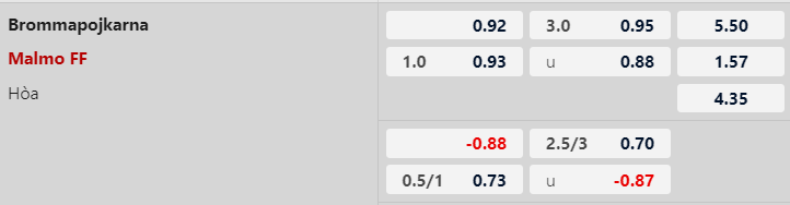 Brommapojkarna thua kèo tới 3 trong số 5 trận đối đầu vừa qua trước Malmo. Trên sân nhà, Brommapojkarna để thua kèo tới 3/4 trận gần nhất tại giải VĐQG và NHM dè chừng với mã đầu tư này. Malmo đem tới cảm giác an toàn khi nằm trong nhóm 3 đội có tỷ lệ thắng kèo cao nhất giải.