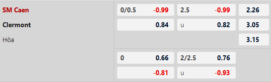 Sàn giao dịch châu Á ghi nhận mức kèo Caen chấp 1/4 trái, tỷ lệ mà đội bóng này thi đấu khá tốt ở những trận đấu sân nhà từ đầu mùa giải, khi bất bại về chuyên môn 4 trận với 2 trận thắng, 2 trận hòa. Theo kèo châu Á, Caen thắng kèo 3/5 trận gần đây trên sân nhà chấp dao động từ 1/4 đến 1/2 trái. Với Clermont Foot, trận sân khách gần đây nhất tại giải hạng 2 Pháp họ cũng được chấp 1/4 trái và nhận thất bại trước Annecy.