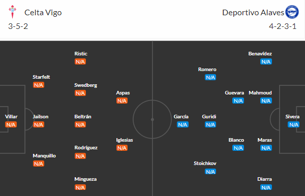 Đội hình dự kiến Celta Vigo vs Alaves: