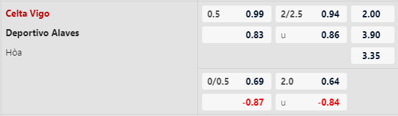 Thông tin kèo bóng đá Celta Vigo vs Alaves: