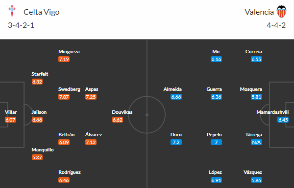 Đội hình dự kiến Celta Vigo vs Valencia: