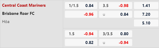 Thông tin tỷ lệ Central Coast vs Brisbane Roar:
