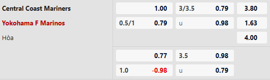 Thông tin tỷ lệ Central Coast vs Yokohama Marinos:
