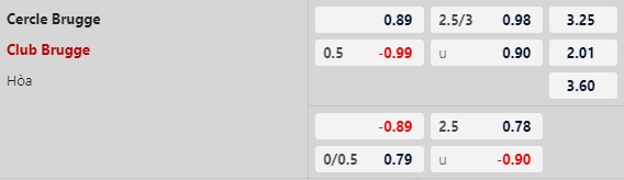 Mức kèo 1/2:0 của Club Brugge là tỷ lệ khá nghi ngờ bởi Cercle Brugge đang thi đấu vào phom khi thắng kèo tới 5/7 trận vừa qua.