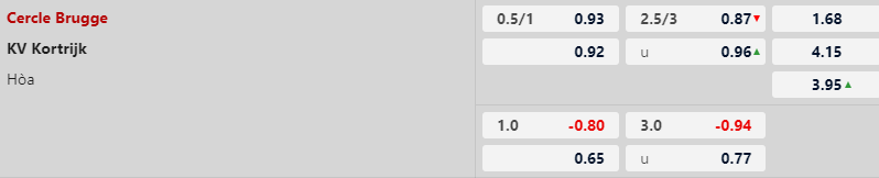 Thông tin tỷ lệ kèo Cercle Brugge vs Kortrijk: