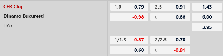Thông tin tỷ lệ CFR Cluj vs Dinamo Bucuresti: