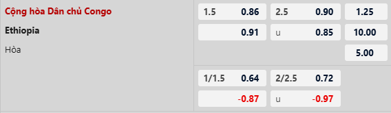 Thông tin tỷ lệ CH Congo vs Ethiopia:
