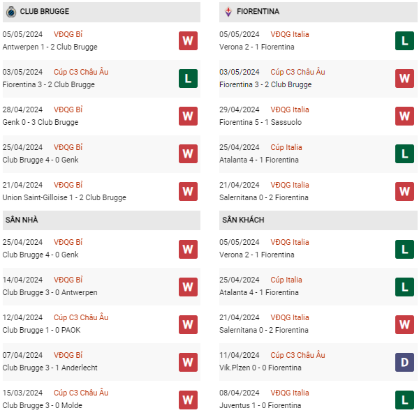 Với chuỗi bất bại của Club Brugge trong 4 trận sân nhà gần đây nhất, Fiorentina phải đối mặt với thử thách khó khăn trong việc giành chiến thắng trước chủ nhà.