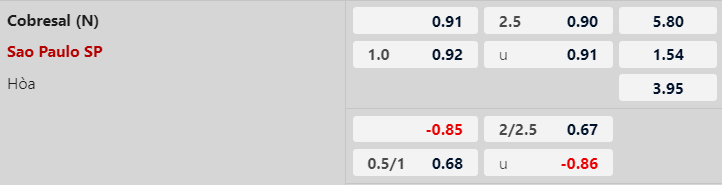 Thông tin tỷ lệ Cobresal vs Sao Paulo: