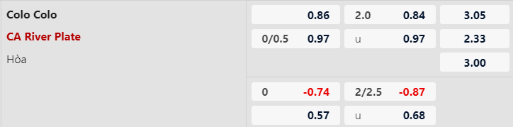 Thông tin tỷ lệ Colo Colo vs River Plate: