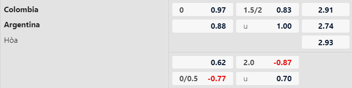 Thông tin tỷ lệ kèo bóng đá Colombia vs Argentina: