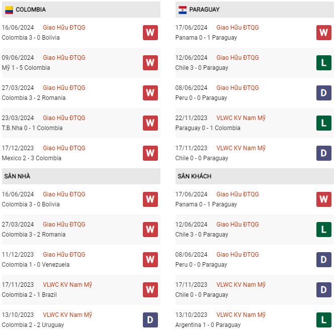 Colombia cũng thi đấu tốt khi đối mặt trong tình huống bị dẫn trước khi lội ngược dòng để giành chiến thắng trong 3 lần chạm trán trước đó khi để thủng lưới bàn mở tỷ số. Mặc dù có rất ít sai sót xảy ra kể từ khi Nestor Lorenzo lên nắm quyền, nhưng NHM Colombia đã từng chứng kiến một câu chuyện tương tự trước đây, khi họ chỉ thua một trong 33 trận đấu trước World Cup 1994 và gục ngã ở giải đấu đó khi bị loại ngay từ vòng bảng. Colombia đã thắng trận mở màn trong 3 kỳ Copa America gần đây nhất, bao gồm chiến thắng 2-0 trước chủ nhà Mỹ vào năm 2016, trong khi họ đánh bại chính Paraguay ở vòng loại World Cup 2026 vào tháng 11 năm ngoái.