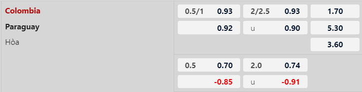 Thông tin tỷ lệ bóng đá Colombia vs Paraguay: