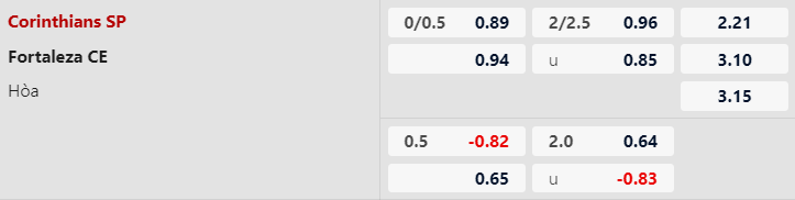 Thông tin tỷ lệ Corinthians vs Fortaleza: