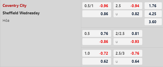 Coventry có lợi thế sân nhà và được đánh giá rất cao so với đối phương khi mức chấp châu Á lên tới 3/4. Coventry bất bại cả 8 trận gần nhất tiếp Sheffield Wed trên sân nhà (5 chiến thắng).