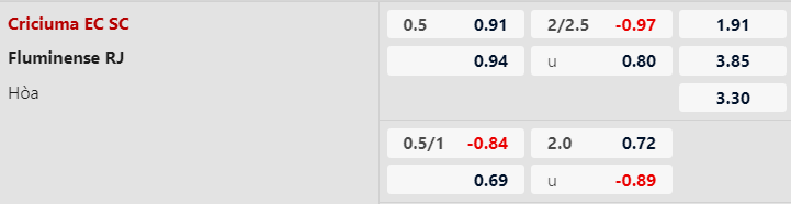 Thông tin tỷ lệ Criciuma vs Fluminense: